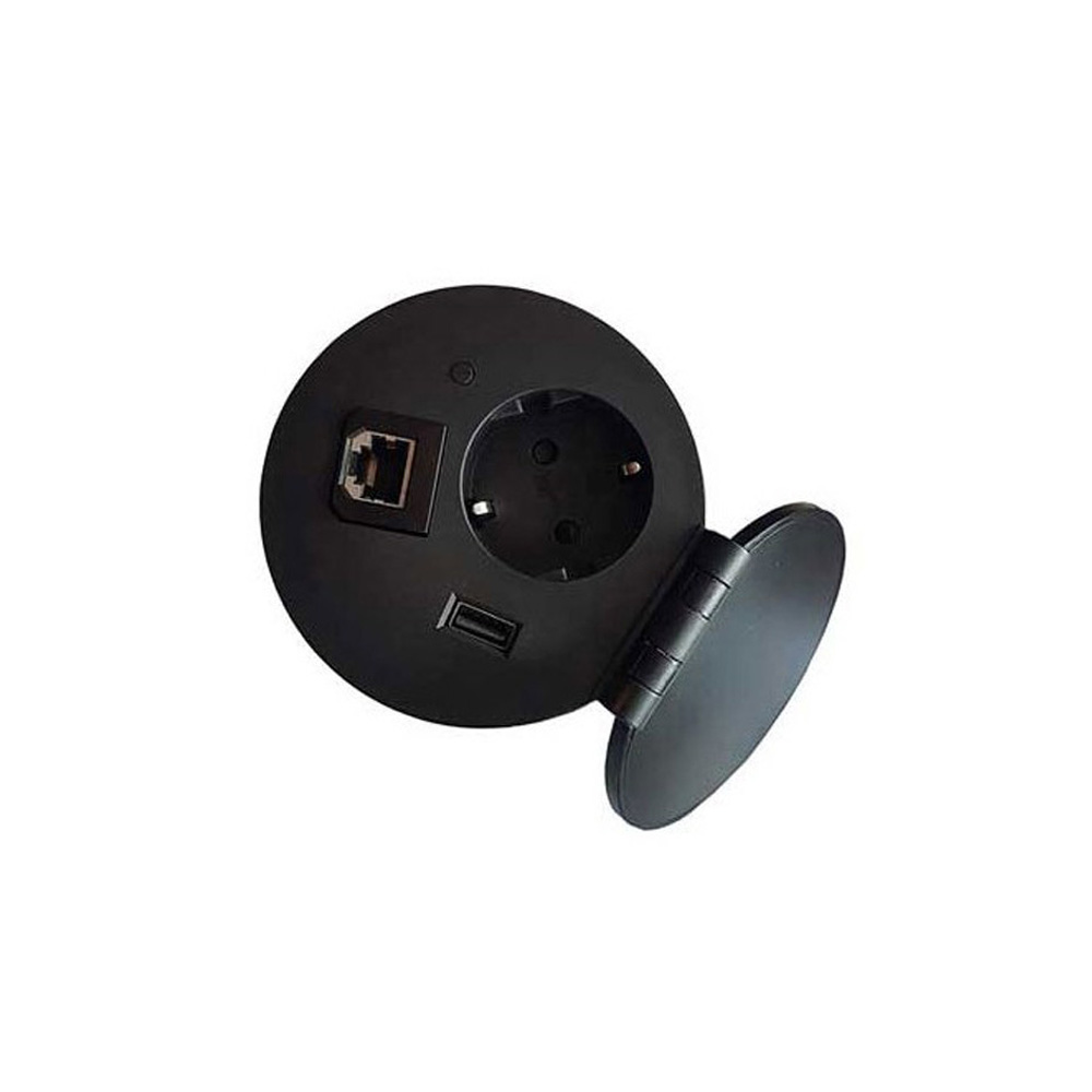 The power grommet design with mobile phone charging lid is elegant and unique. The 80mm diameter grommet solution perfectly provides power & USB connectivity and wirleless charging  in a modern kitchen.