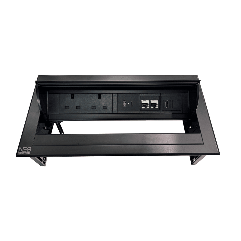 Configuration: 2x UK BS 1363 Power Sockets, 2x Data port, 1xHDMI and 1x Twin USB A+C fast charger are integrated.