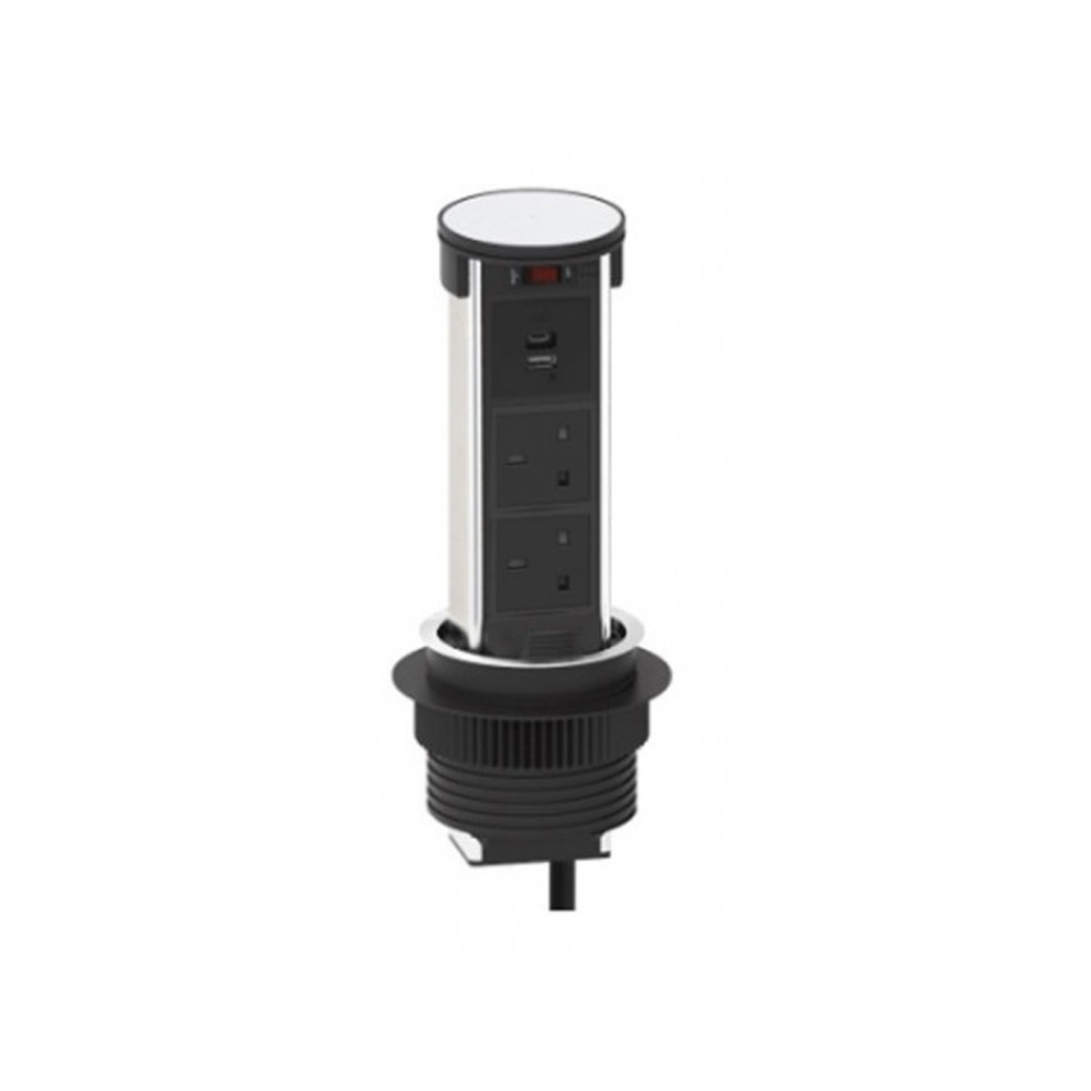 Standard Configuration: 3x UK Power, BS1363, 1x USB A + 1x USB C Mobile phone 5V charger and 1x Wireless fast Charging 15 Watt Top.